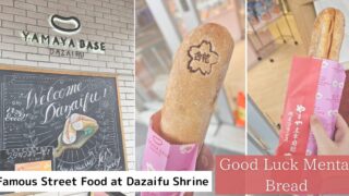 Discover YAMAYA’s famous Mentai French Bread at Dazaifu Tenmangu. A must-try street food with a “Good Luck” stamp, perfect for travelers and exam takers visiting Dazaifu, Fukuoka.